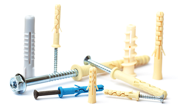 Эластичный материал, обладающий высокой химической стойкостью. Полиэтилен устойчив к действию воды, не реагирует со щелочами любой концентрации, с растворами нейтральных, кислых и основных солей, органическими и неорганическими кислотами, даже концентрированной серной кислоты. К недостаткам можно отнести старение, низкую прочность и твердость, низкие нагрузочные характеристики. Крепежные изделия из полиэтилена подходят для неответственных креплений внутри помещений.
