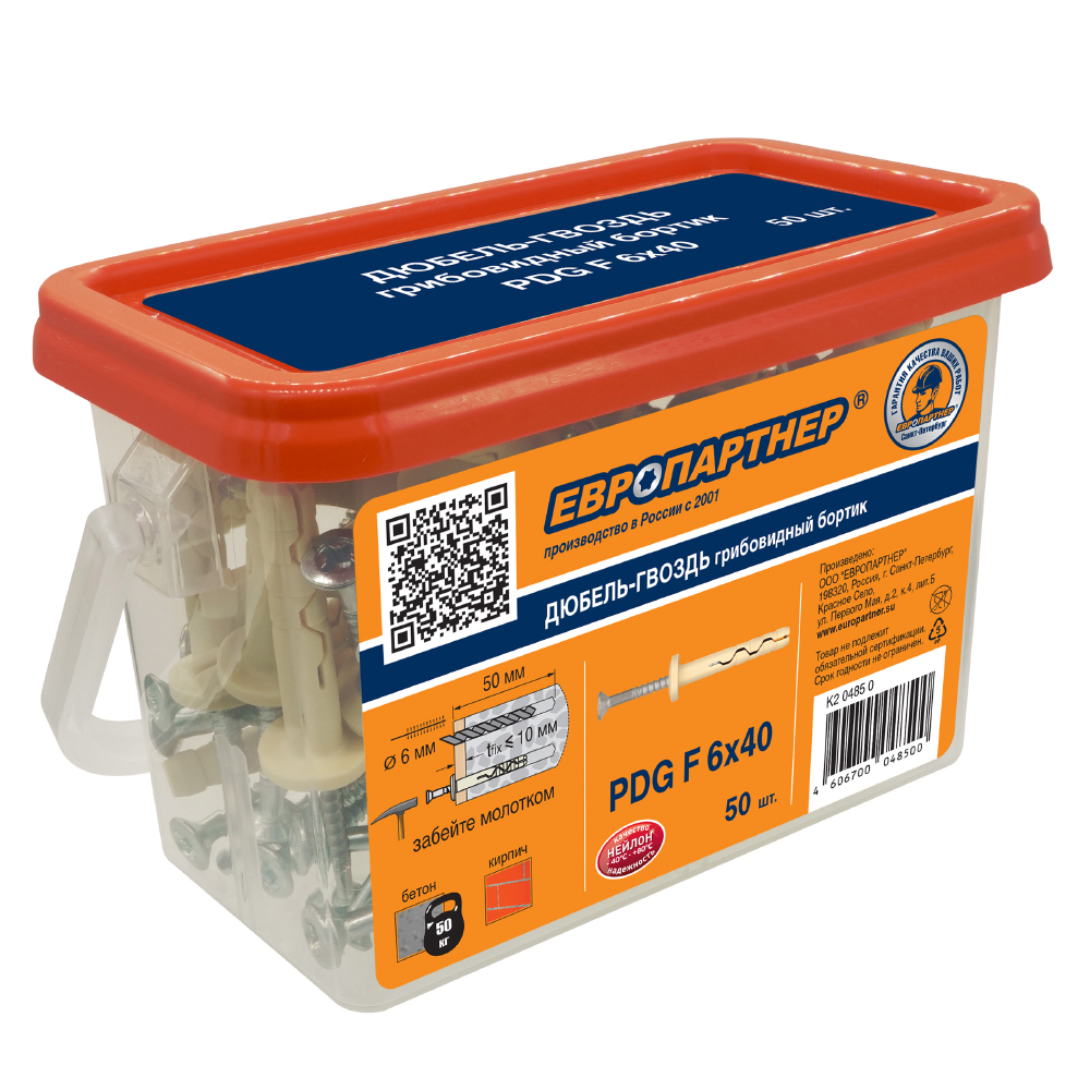 Дюбель-гвоздь PDG F - крепежный элемент для легких креплений в твердых основаниях: бетон, кирпич или натуральный камень.
