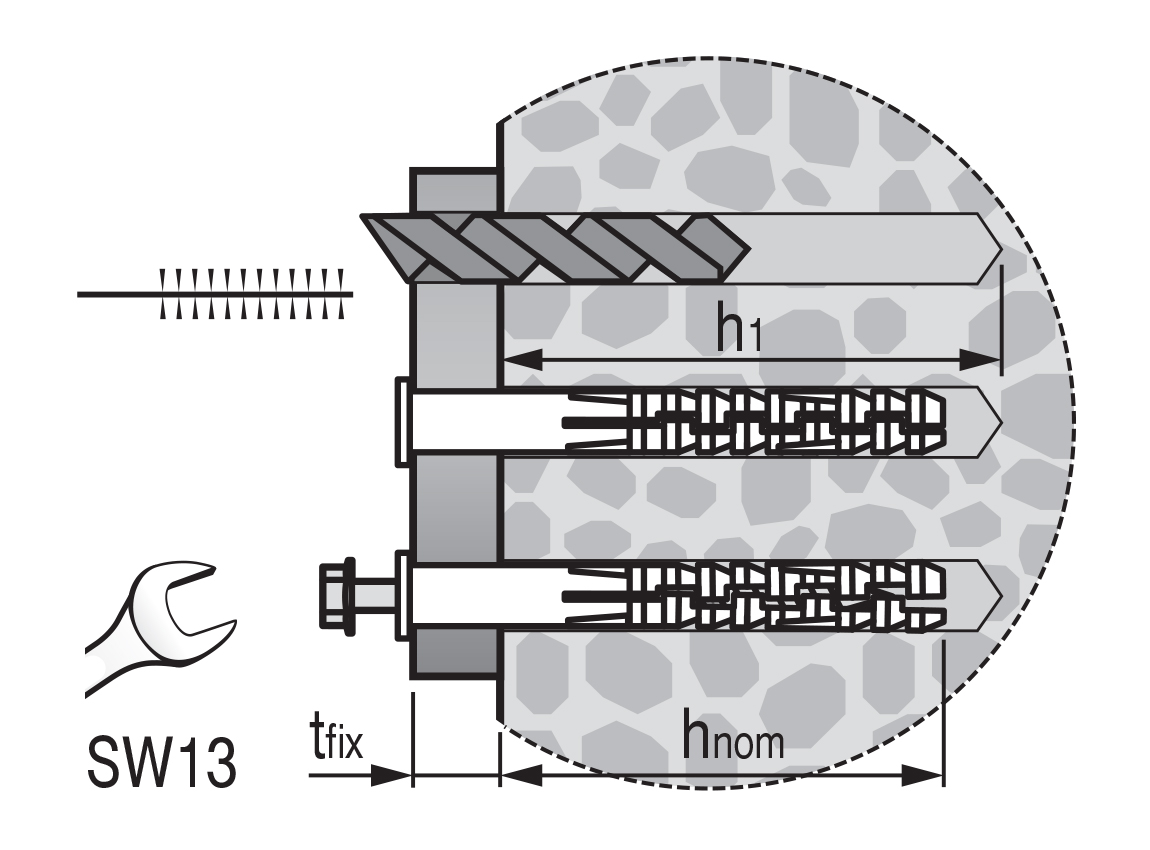 Дюбель PNDS F предназначен для сквозного монтажа различных конструкций и оборудования. В комплекте с шурупом.