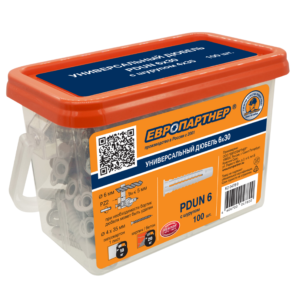 В полнотелых материалах работает как распорный дюбель. В пустотелых и листовых материалах скручивается в узел.