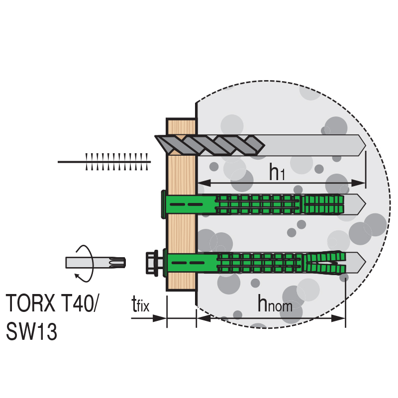 Дюбель АНФ-Л предназначен для сквозного монтажа элементов фасадных конструкций в легких ячеистых бетонах. Обеспечивает надежное крепление за счет дополнительной распорной зоны.