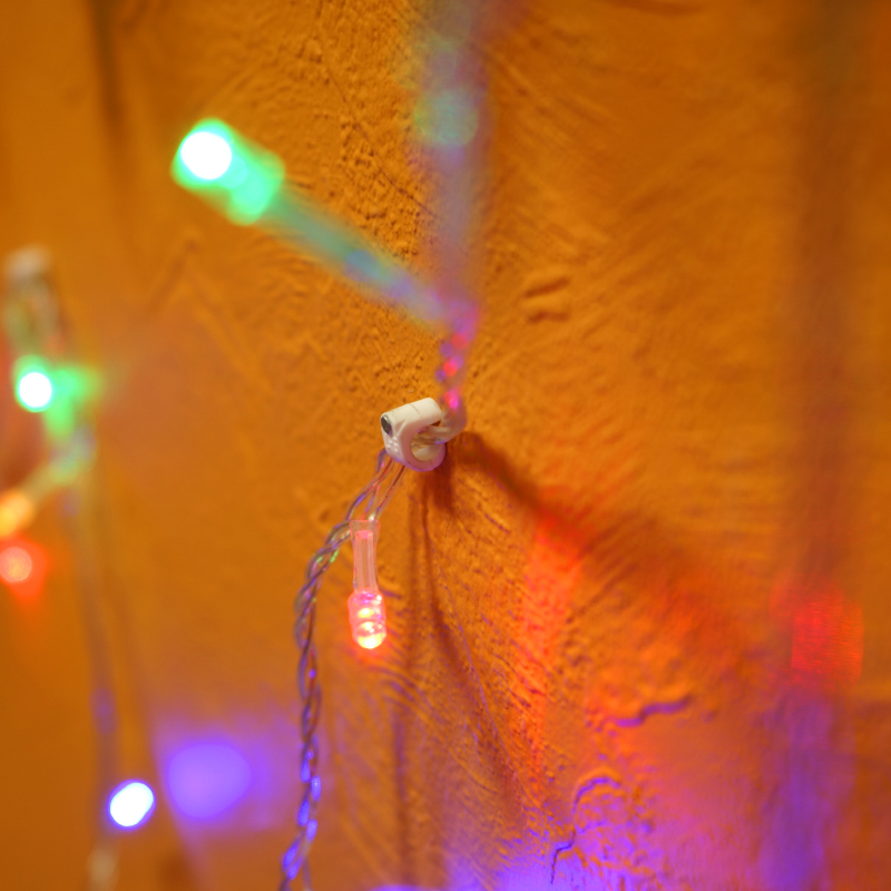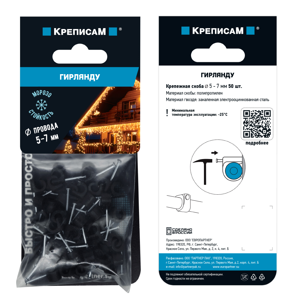 Скоба сделанаиз морозоустойчивого полипропилена. Одна скоба, за счет своей формы, позволяет закрепить гирлянды, имеющие разные толщины кабелей.