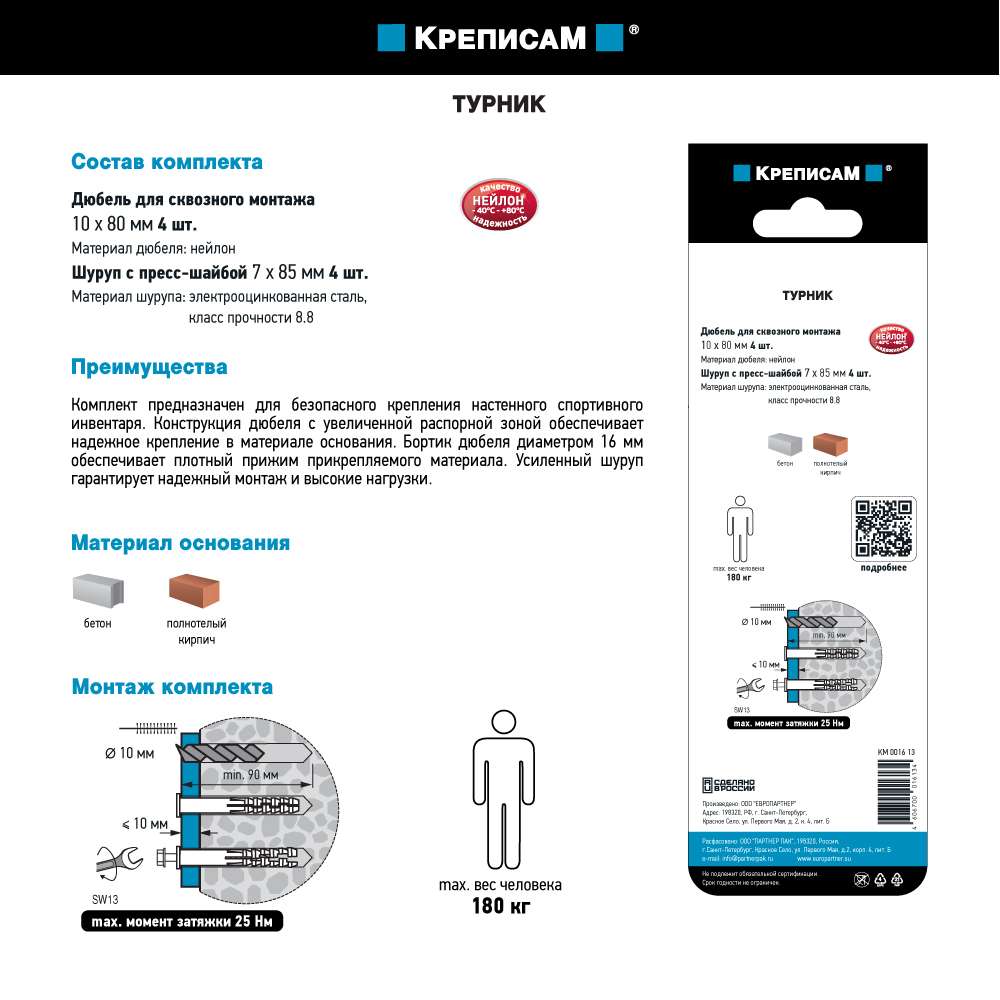 - усиленный шуруп обеспечивает надежный монтаж и гарантирует высокие нагрузки