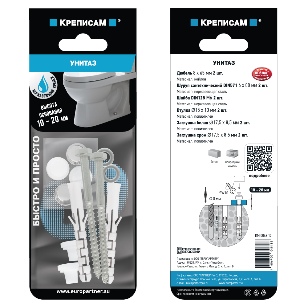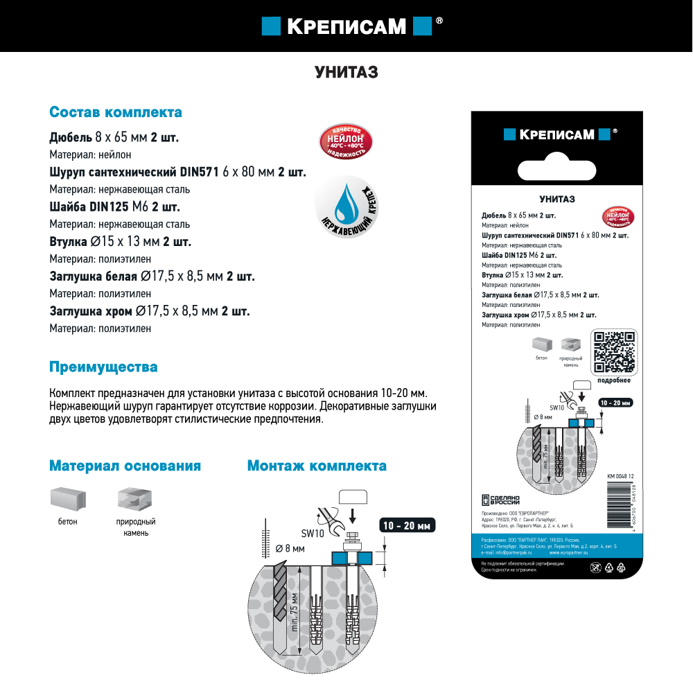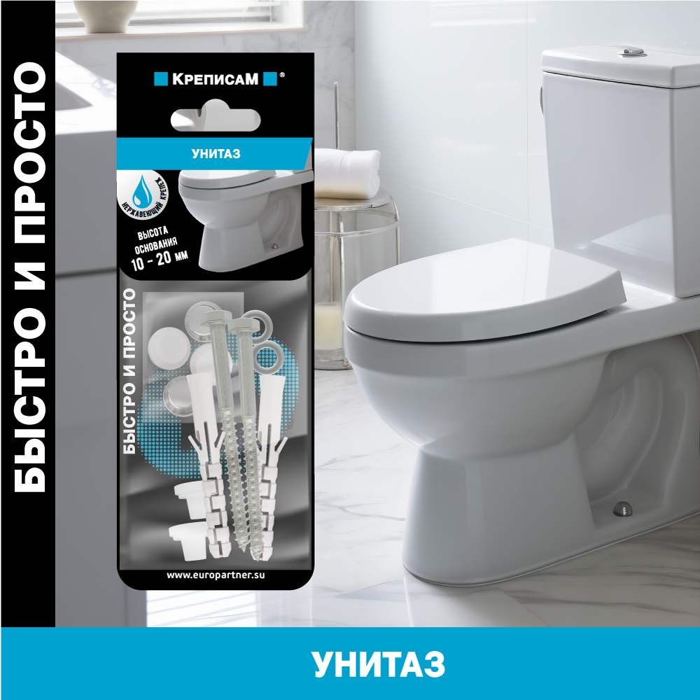 Комплект предназначен для установки унитаза с высотой основания 10-20 мм.