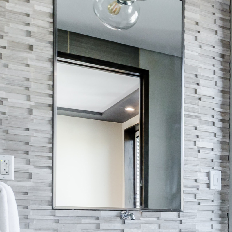 Круглые держатели втулки обхватывают зеркало сверху и снизу, плотно прижимая его к стене.