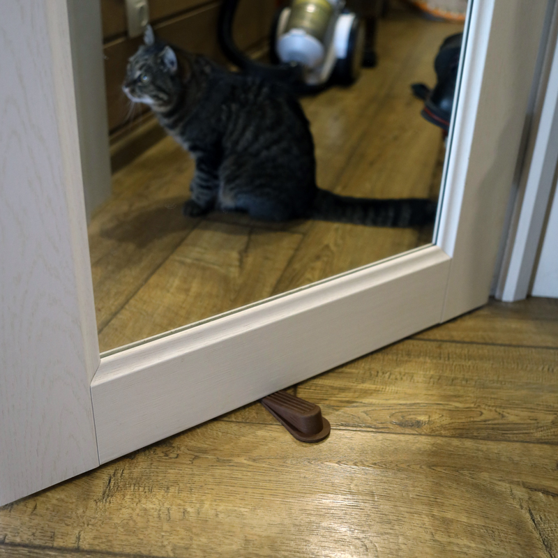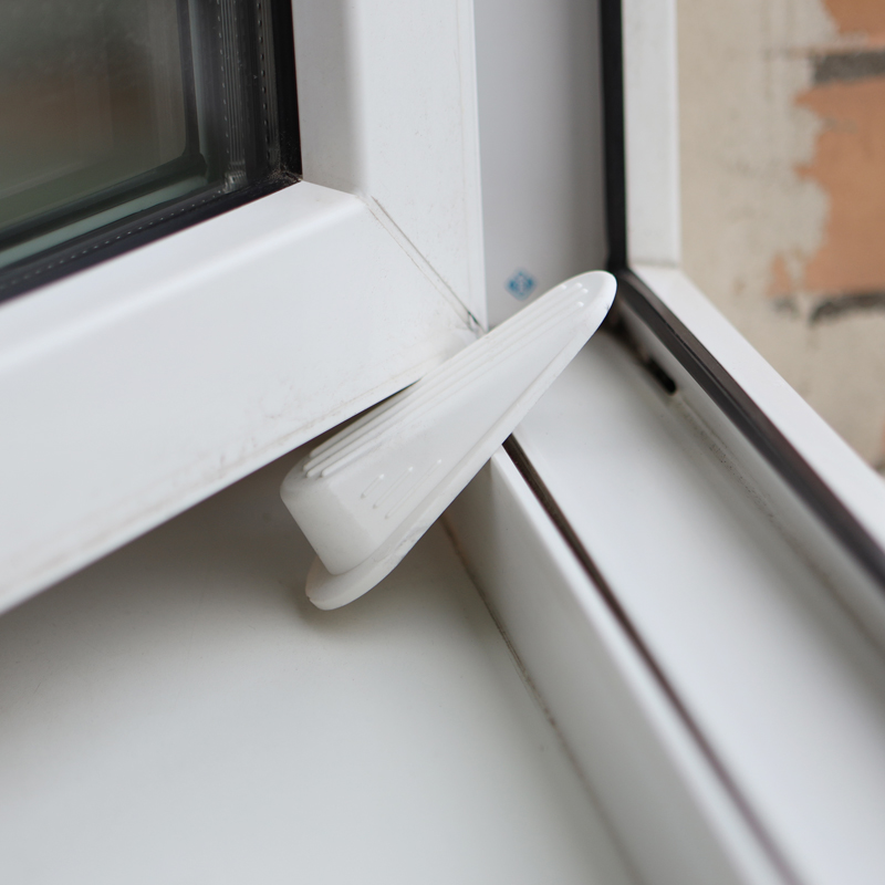 Стопор-клин выполняет функцию упора, предотвращая повреждения стен, дверей и окон.