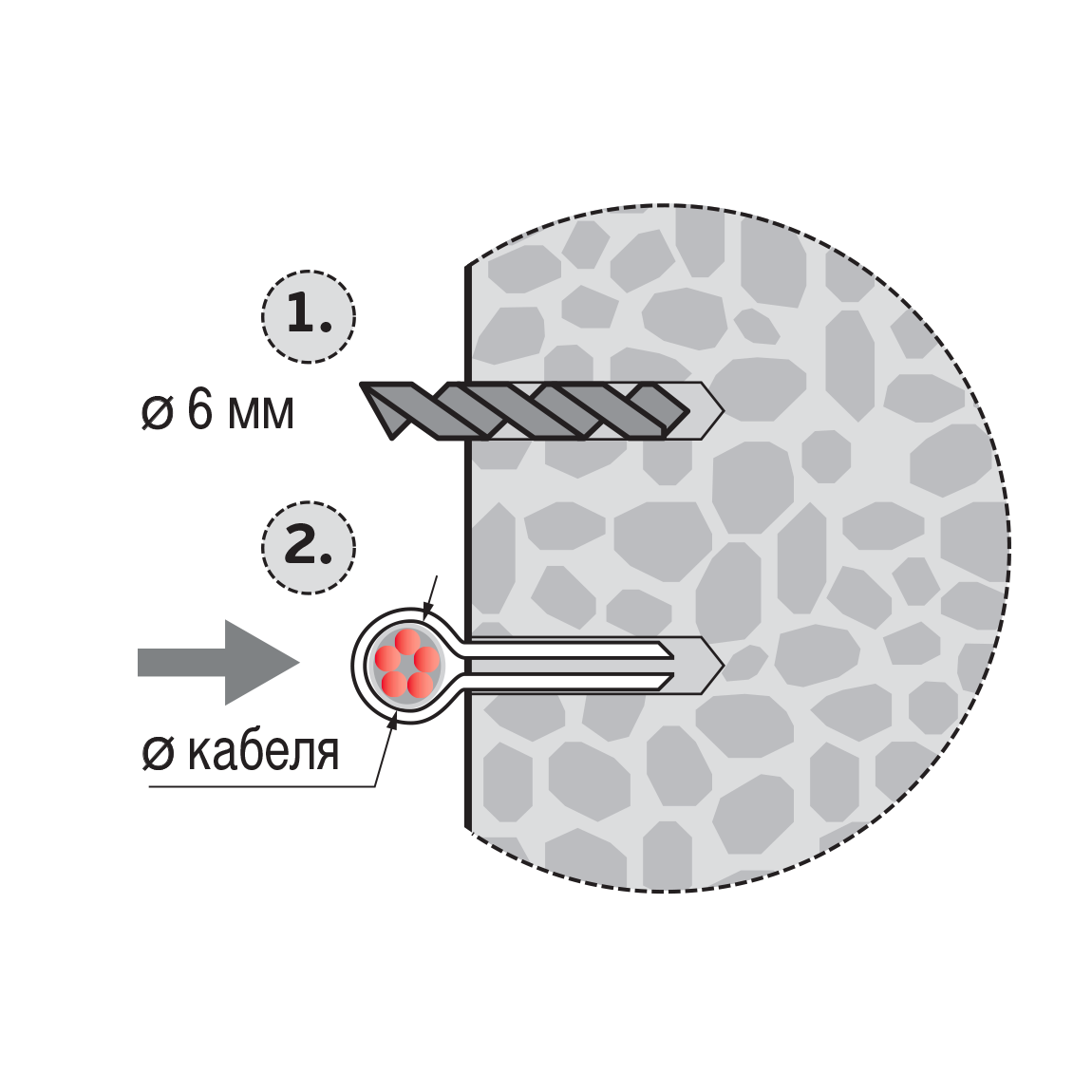 Быстрое и надёжное крепление кабеля к бетонным и кирпичным поверхностям осуществляется без использования дюбелей и шурупов.
