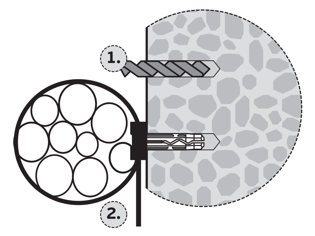 Комплектуется дюбелем multi6 с универсальным шурупом 4x30.