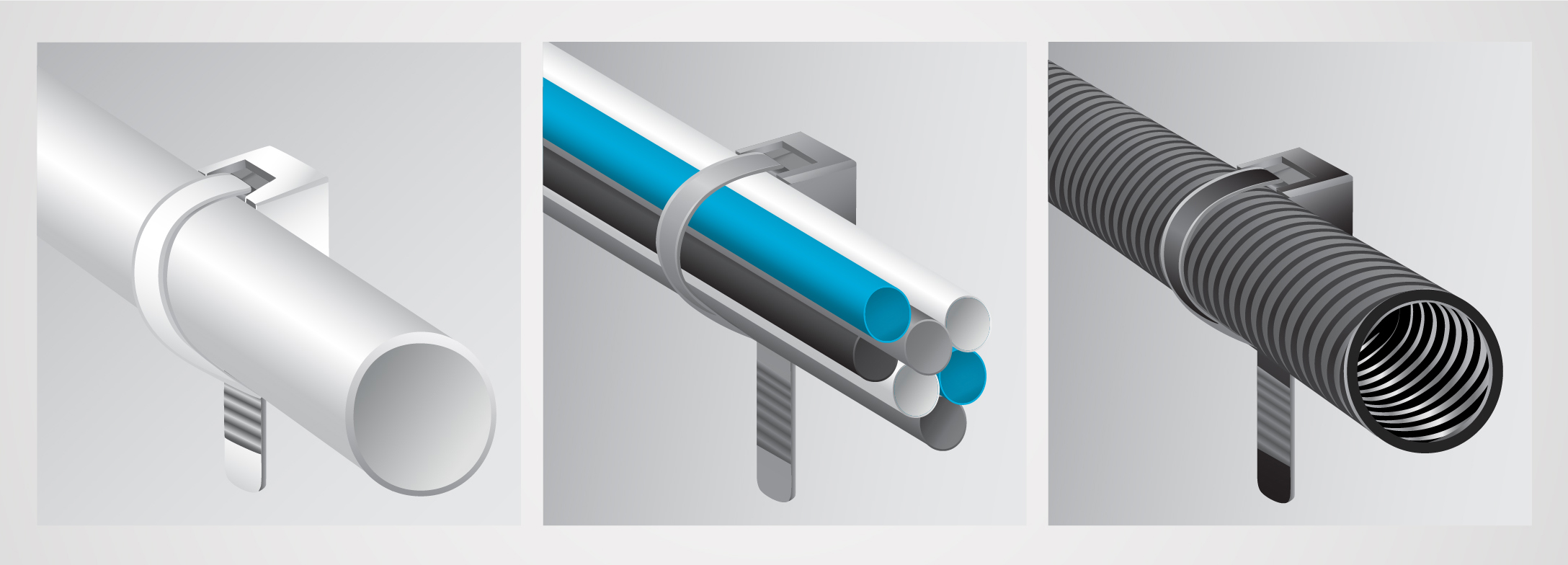 Ремешок предназначен для крепления водопроводных, фановых, гофрированных труб и электротехнических проводов к любым основаниям. Минимальная температура монтажа -5°С.
