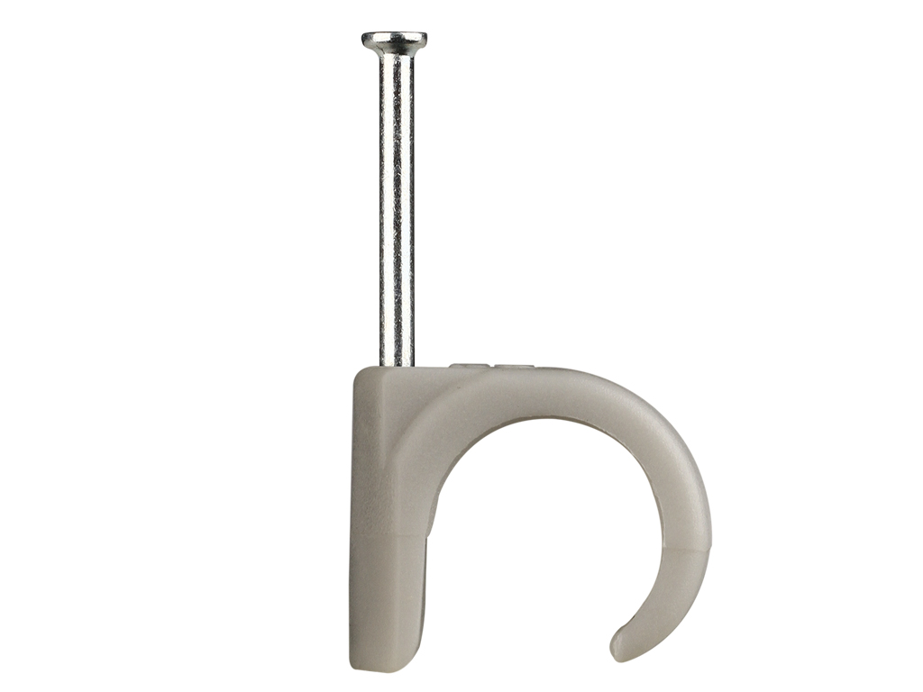 Гвоздь крепежной скобы изготовлен из закаленной стали с электрооцинкованной поверхностью.