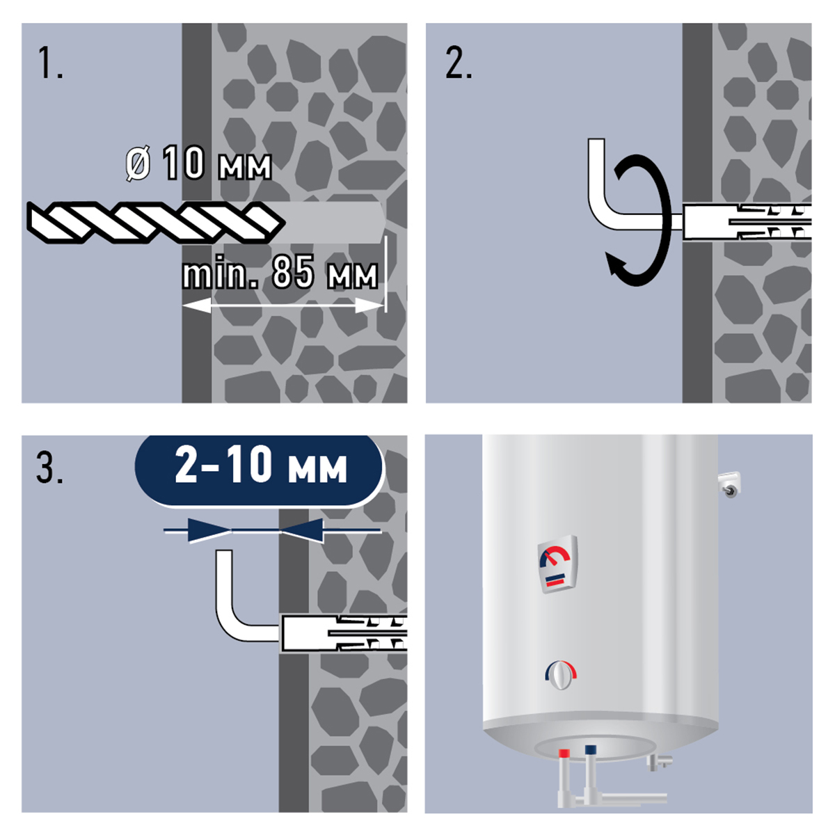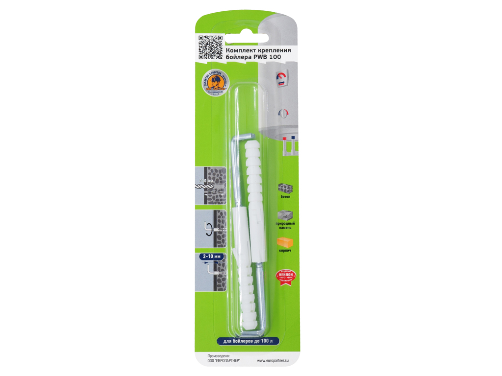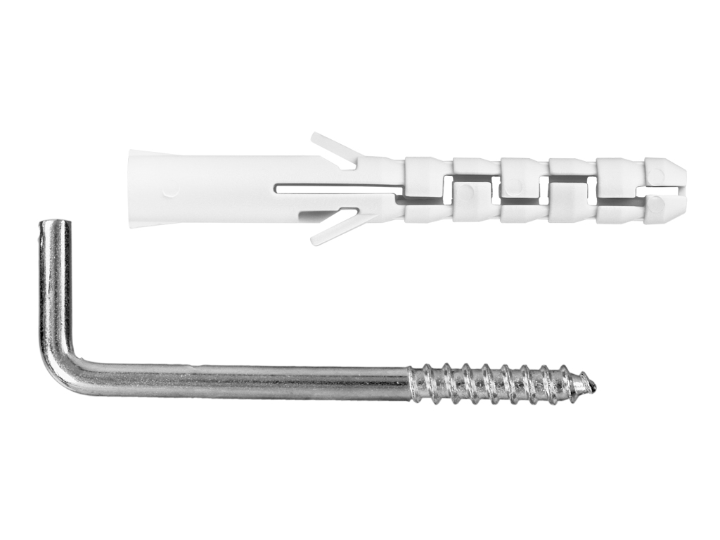 В комплекте PWB 100: нейлоновый дюбель, крюк-шуруп.