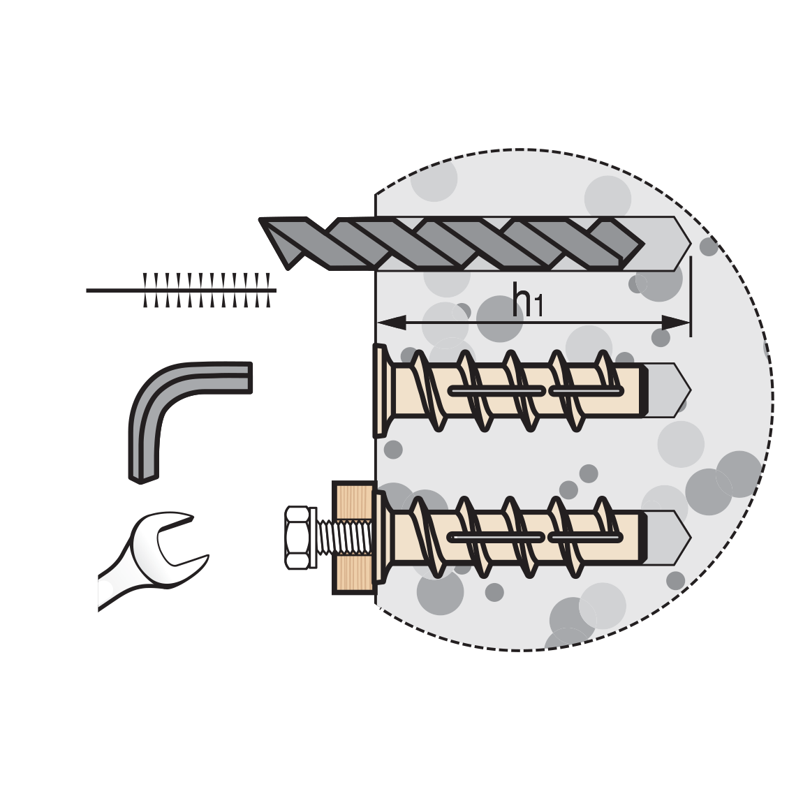 Для установки дюбеля используется шестигранный ключ.