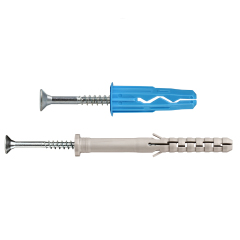 Дюбель РВАM изготовлен из нейлона, усиленного стекловолокном и предназначен для крепления в гипсокартонный лист, пенобетон и газобетон. Особая конструкция с двойной спиралью и специальным сверлильным наконечником позволяют легко его устанавливать. Из-за отсутствия распорных усилий допускается крепление близко к краю и друг от друга. Единственным минусом является максимальная толщина прикрепляемого материала, составляющая 12 мм.